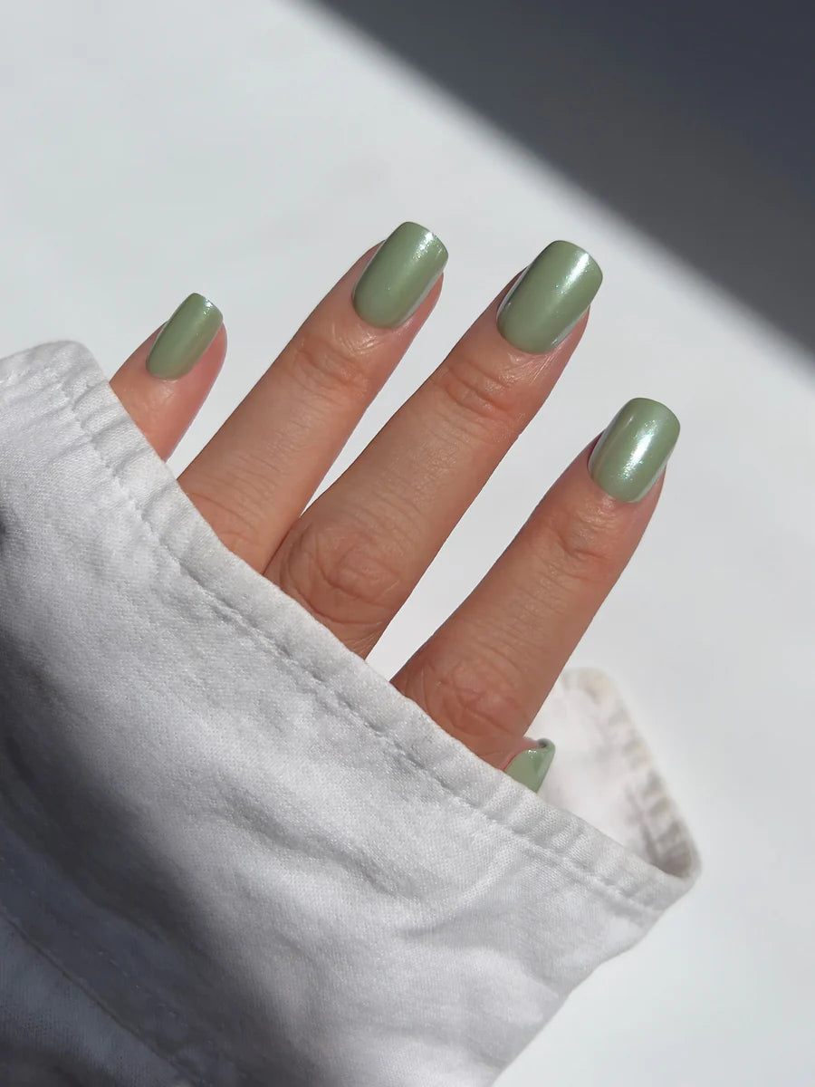 Embrace nature's sophistication with this trending shade. These press-ons combine a subtle sage green with metallic undertones for a modern look that's both refined and fashion-forward.